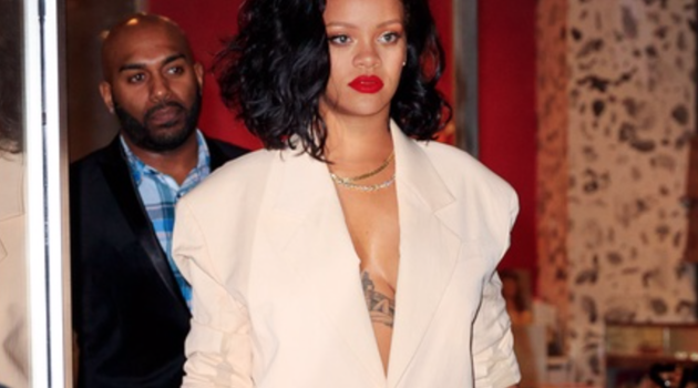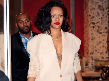 Образ дня: Рианна в белой шелковой юбке и пудровом оversize пиджаке на голое тело в Нью-Йорке
