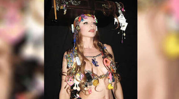 Модель Джулия Фокс снялась в брелоках и с ящиком на голове