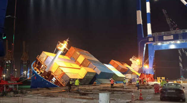 Контейнеровоз Amnah опрокинулся в порту Стамбула