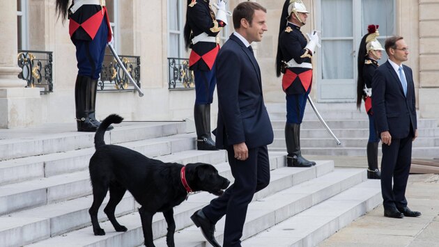 Собака Макрона выступила с новогодним посланием — и призвала брать животных из приюта