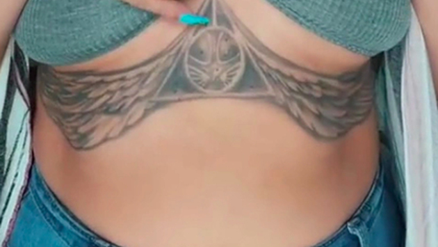 Жительница США, которая ведет блог под никнеймом Tash B, захотела сделать женственную татуировку под грудью в стиле атрибутов из вселенной «Гарри Поттера». Предполагалось, что на ее теле появится изображение «Даров Смерти» (объединяющее название трех артефактов: Бузинной палочки, Воскрешающего камня и Мантии-невидимки) с «Золотым Снитчем» (маленький золотистый шарик с серебряными крыльями) посередине.