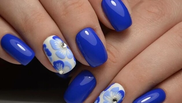 В 2023 году синий маникюр входит в список самых модных тенденций. Гель-лак этого цвета смотрится на ногтях красиво и придает любому образу нотку элегантности. Дизайн прекрасен как в однотонном исполнении, так и в сочетании с декором. Лучшие идеи представлены на фото ниже.