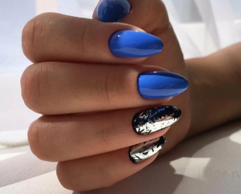 Синий дизайн на длинные и короткие ногти в 2023 году