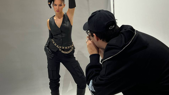 Девушка позирует в одежде одного из российских брендов. Для съемки Юмашева примерила вещи в темных цветах: боди, кожаные плащ и куртку, деловой костюм, мини-юбку, жилет и перчатки. Надирян сообщил, что сделал снимки полгода назад, но ранее не выкладывал их в сети.