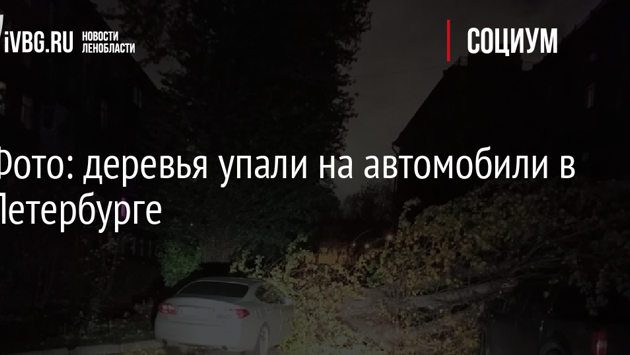 Фото: деревья упали на автомобили в Петербурге