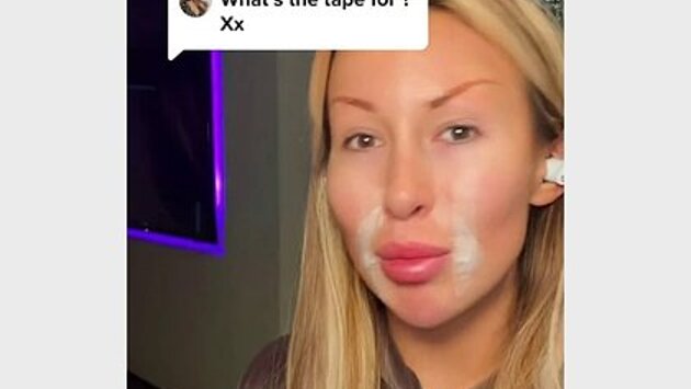 На размещенных кадрах женщина предстала с расположенной по обе стороны лица лентой. Так, две полосы располагались параллельно друг другу, следуя от подбородка до области под глазами, еще две из них накрест перекрывали первые. При этом инфлюэнсерша заявила, что наклеивает пластырь подобным образом каждую ночь, чтобы носогубные складки не становились глубже во время сна, когда кожа соприкасается с подушкой.