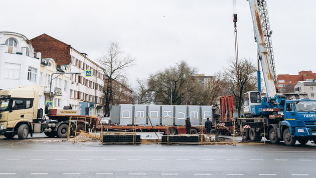 В центре Щелкова на новом круговом перекрестке Советского переулка и улицы Комарова начали устанавливать стелу с названием муниципалитета.