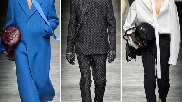 Но Де Сарно — более тонкий и внимательный к деталям персонаж. Начиная с кармашка для ноутбука в его версии рюкзаков и заканчивая подкладками из кожи с добавлением бондажа в верхней одежде. А ещё вы заметили тонкий эффект тени на культовый монограмме GG? В этом весь он!