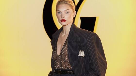 Бывший «ангел» Victoria's Secret появилась на модном показе Yves Saint Laurent в Париже. Для мероприятия 35-летняя манекенщица выбрала темно-синий костюм в вертикальную полоску, состоящий из юбки-карандаша и объемного пиджака. При этом она надела прозрачную блузу, сквозь ткань которой видна ее голая грудь.