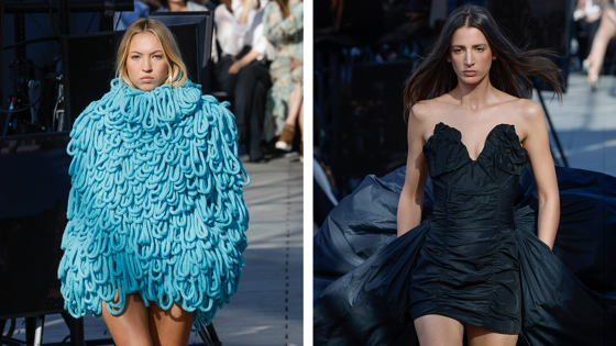 С точки зрения эстетики, жёсткие подплечники задали моделям широкую плечевую линию, напоминая о 80-х, в то время как асимметричное платье из веганской кожи с шипами произвело приятную вспышку панка. Впрочем, иногда силуэты теряли объёмы, как например чёрный мягкий комбинезон, но это было, скорее, исключением из общего ряда.
