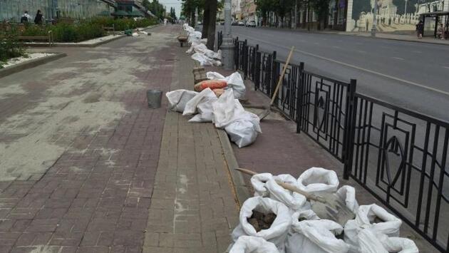В Курске на улице Ленина места для посадки деревьев заделывают плиткой