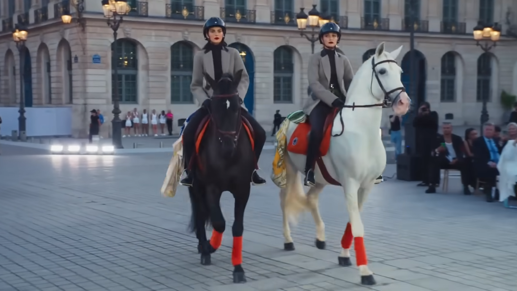 Кендалл и Джиджи на протяжении всего показа старались сохранять спокойствие и самообладание, однако изредка они аккуратно гладили лошадей, чтобы подбодрить их. Модели стали одними из главных звёзд показа, а решение вывести на улицы лошадей стало отличным ходом. Девушки сохраняли самообладание, но в какие-то моменты не могли удержаться от того, чтобы погладить лошадей. Животные, кстати, вышагивали по Вандомской площади в платках от того же Hermès.