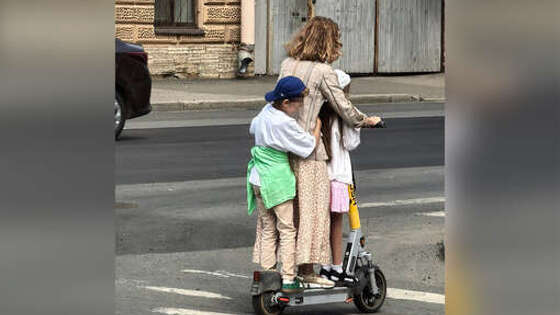 В Петербурге женщину оштрафовали за поездку на электросамокате с двумя детьми