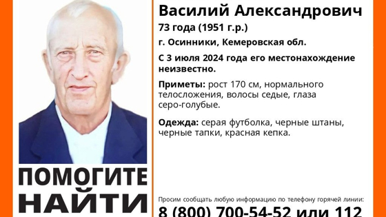 ПСО "Лиза Алерт" сообщил об исчезновении 73-летнего жителя Осинников. С 3 июля местонахождение Мясникова Василия Александровича неизвестно.