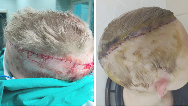 Уточняется, что угроза заключалась в том, что открытая кость подвергается некротическим изменениям и гниению, а бактериальная инфекция может привести к сепсису, полиорганной недостаточности и смерти. Несмотря на сложность случая, девушку удалось спасти, лоскут прижился, хотя произошли повреждение сосудов, отмирание тканей и утрата полулитра крови. Как передает Life, девушка чувствует себя хорошо, ее уже выписали, а кожа полностью закрыла кости головы.