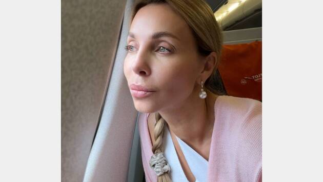 55-летняя избранница исполнителя снялась в самолете по пути в Сочи. Она предстала перед камерой, сидя у иллюминатора в трикотажном белом топе и розовом кардигане.