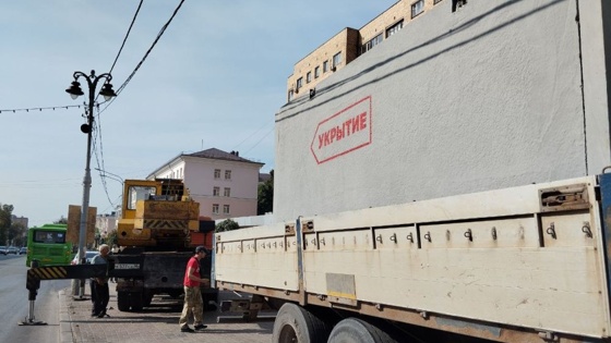 В Курске началась установка модульных железобетонных укрытий.