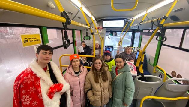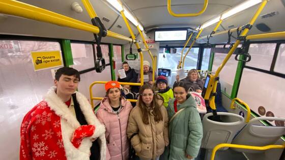 Курские школьники поздравили с новогодними праздниками водителей общественного транспорта