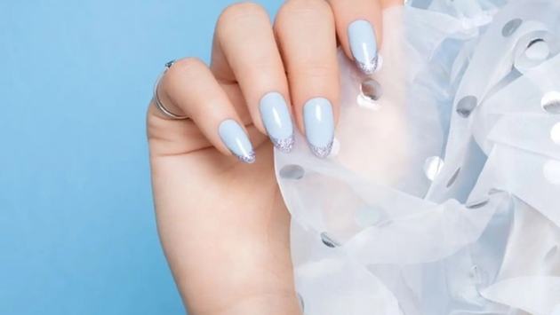 - Французский маникюр. Классическая версия французского маникюра с белым кончиком остается популярной, но можно добавить немного зимнего шарма, используя оттенки синего, серебристого или золотистого вместо белого.