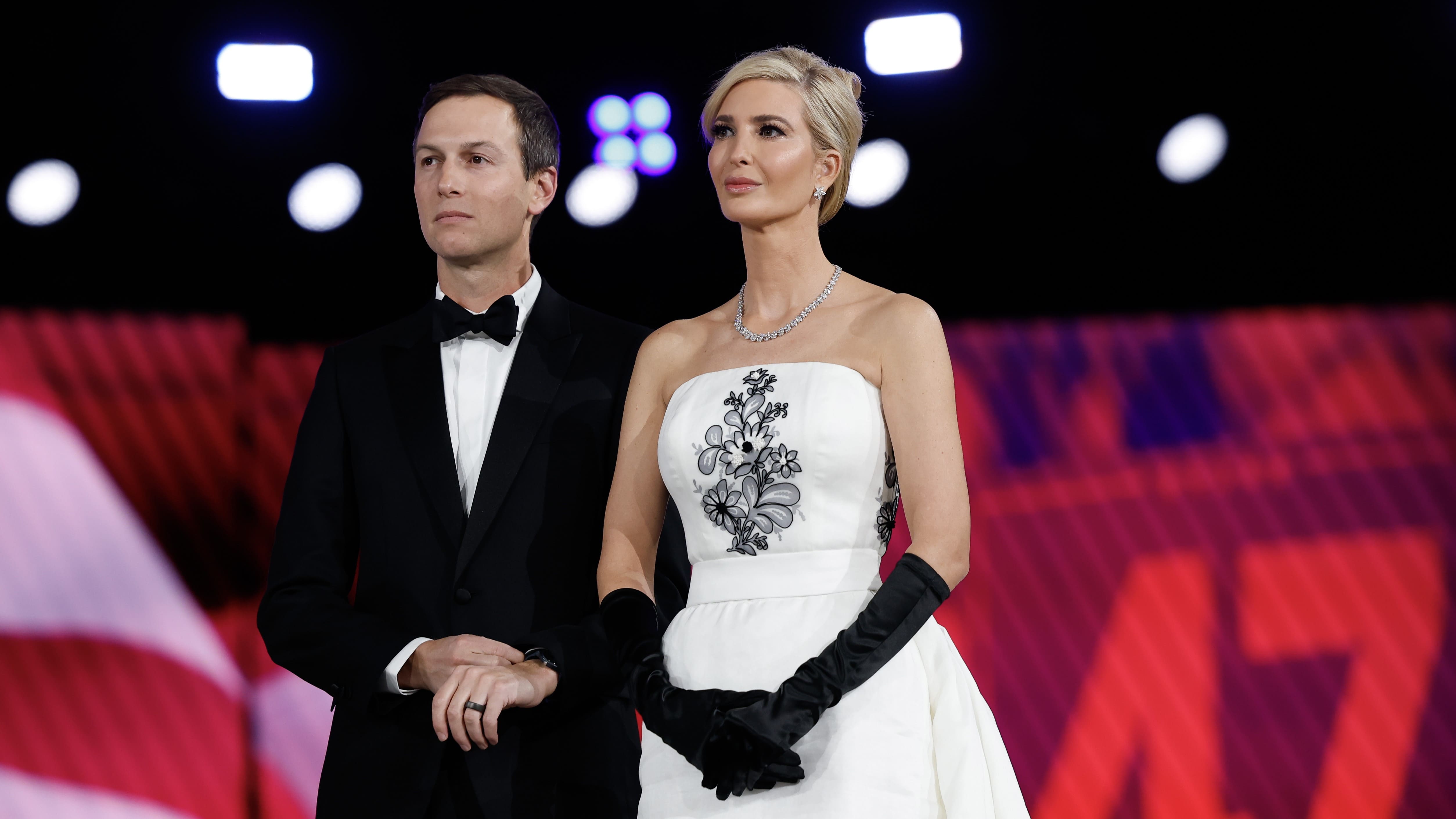 Позже на инаугурационном балу 43-летняя первая дочь США появилась в белом платье с открытыми плечами и шлейфом, расшитом цветами. Это была копия наряда Одри Хепберн из фильма «Сабрина», созданное для нее модным домом Givenchy. Для Иванки Трамп в ателье бренда сделали такое же.