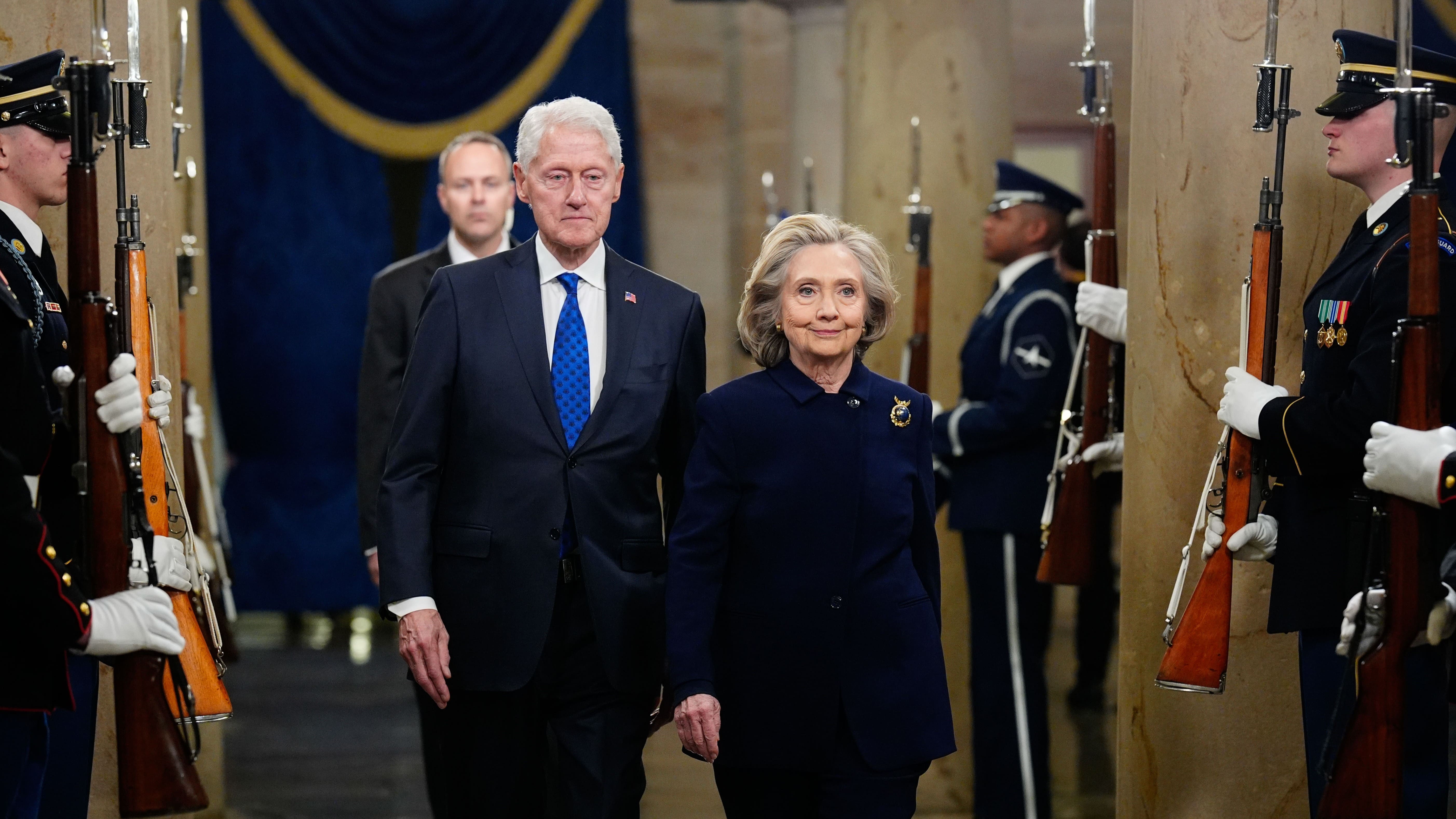 Сторонницы демократов и бывшие первые леди США Джилл Байден и Хиллари Клинтон появились на инаугурации в похожих нарядах. Первая вышла провожать супруга на пенсию в свободном лиловом пальто Ralph Lauren и васильковом платье с перчатками в тон. Вторая тоже обратилась к оттенкам синего — и появилась на инаугурации в застегнутом наглухо брючном костюме Stella McCartney цвета индиго, украшенном брошью «Мир на Земле» ювелира Энн Хэнд. Бывшая вице-президент США Камала Харрис также выбрала брючный костюм — но черный, с застежками в виде молнии.