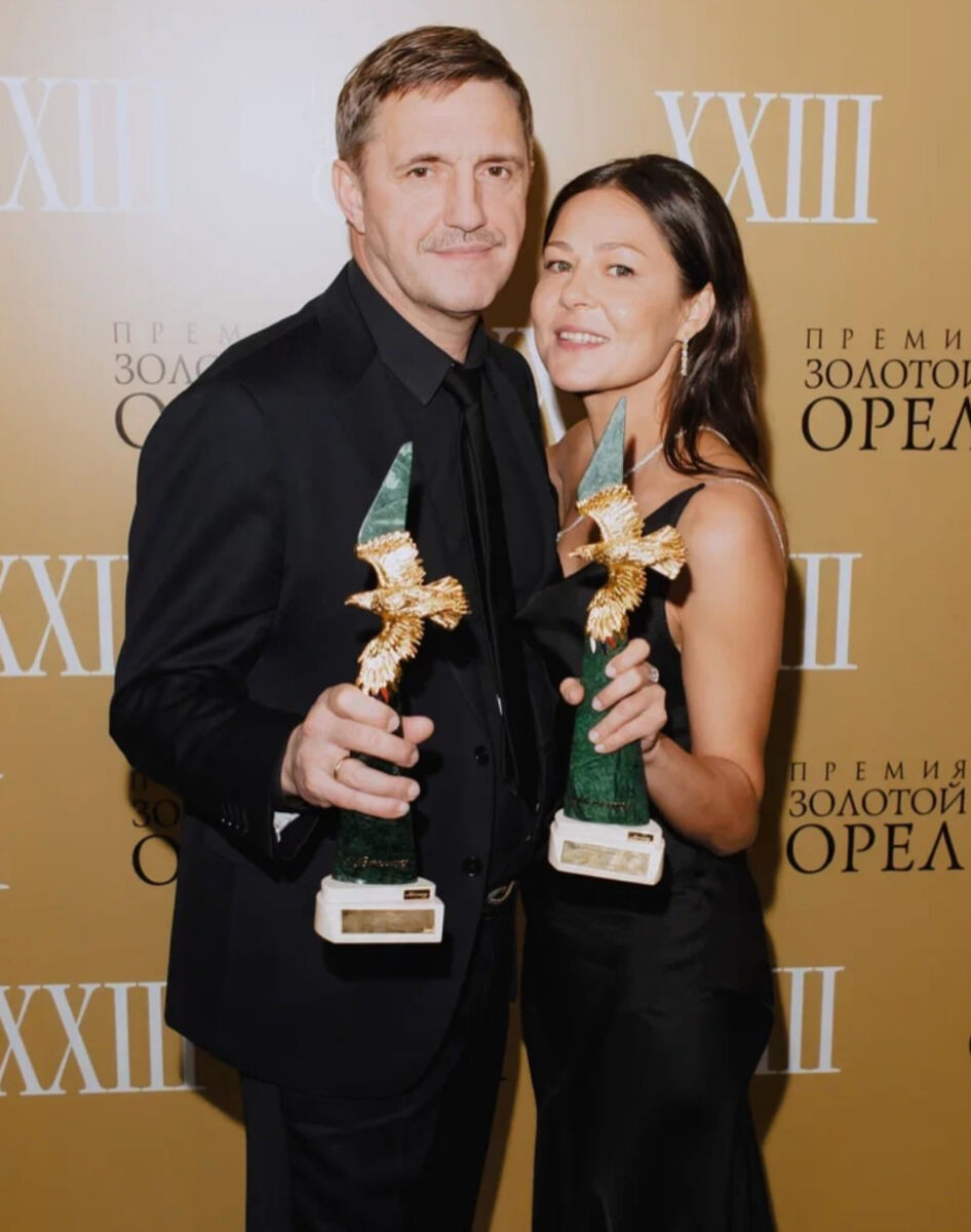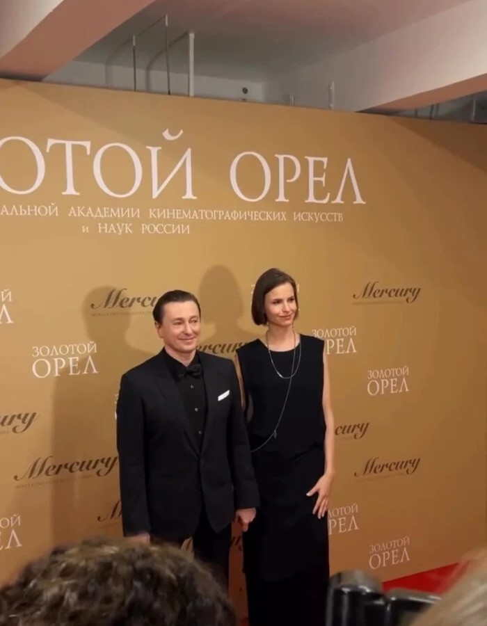 Еще одной парой, повторившей тотал-блэк образ на ковровой дорожке стали Сергей Безруков с супругой Анной Матисон. На Сергее — черный костюм, как у Вдовиченкова, только вместо галстука — бабочка. Матисон для выхода в свет предпочла прямое платье длины миди черного цвета. Просто, но со вкусом.
