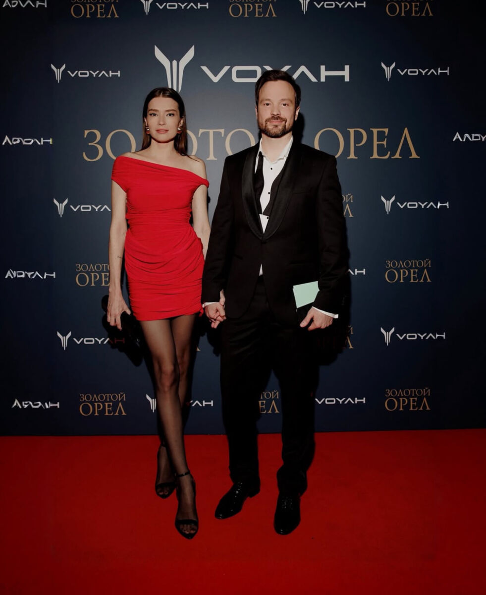 На церемонии со своей второй половинкой появился и Алексей Чадов. Его сопровождала жена Лейсан Галимова, которая в прошлом году родила ему дочку. У актёра в образе просматривается нарочитая небрежность: классический костюм, расстегнутая рубашка и развязанная бабочка, ниспадающая по плечам. А Галимова разбавила образ красным облегающим коротким платьем. Вероятно, девушка еще не до конца пришла в форму после родов, но сборки на платье скрывают все недостатки, если такие все же имеются.