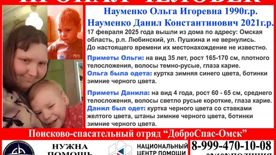 Уточняется, что 17 февраля они вышли из дома на улице Пушкина в р. п. Любинский и назад не вернулись.