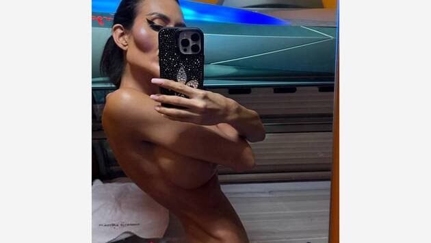 Блогерша, которая заявила, что стала обладательницей самых больших щек в мире, запечатлела себя в зеркале во время похода в солярий. Она позировала обнаженной, стоя боком к камере и прикрывая руками грудь.