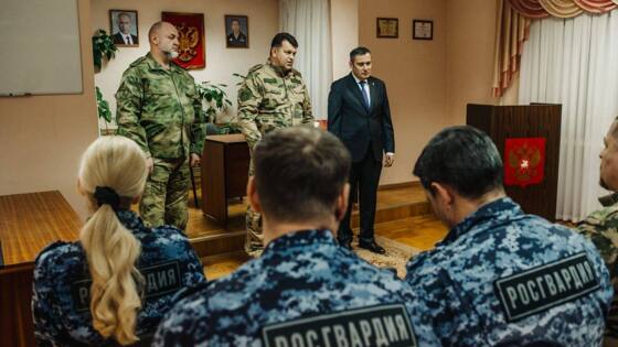 В здании Управления вневедомственной охраны Росгвардии по Курской области прошло торжественное мероприятие, на котором врио губернатора Курской области Александр Хинштейн вместе с первым заместителем командующего Центральным округом Росгвардии Героем России генерал-лейтенантом Вячеславом Пытковым вручили 15 государственных и 30 ведомственных наград бойцам, которые в рамках режима КТО охраняют порядок в регионе. — За мужество, отвагу и самоотверженность, проявленные при исполнении воинского и служебного долга медаль ордена «За заслуги перед Отечеством» I степени вручена генерал-майору полиции Константину Обушеву, двум сотрудникам ОМОН «Финист» – медали «За отвагу» и 12 сотрудникам вневедомственной охраны – медали «За спасение погибавших», — рассказал врио губернатора. Сотрудники Росгвардии достойно справляются со всеми задачами, которые возникают в непростое для региона время. Например, августе 2024 года работники Глушковского отделения из под обстрелов эвакуировали 320 жителей. Также Александр Хинштейн сообщил, что сейчас он вместе с коллегами готовит проект введения дополнительных выплат для состава вневедомственной охраны. Больше новостей в нашем Telegram-канале PROKursk и соцсетях «ВКонтакте» и «Одноклассники»