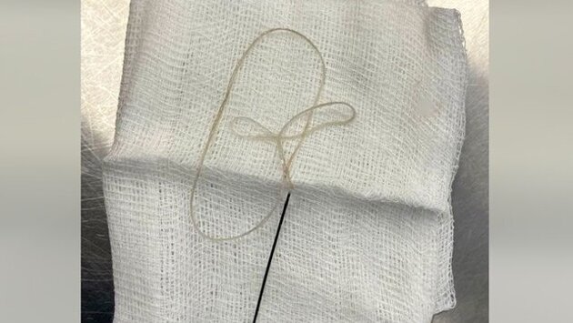 Владельцы животного обратились в клинику, заметив, что их питомец стал грустным. В результате врачи с помощью рентгена установили, что инородный предмет расположен в пищеводе. Хирург Антон Костин с помощью эндоскопа вытащил иглу из пищевода 5-летней собаки.