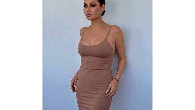 На размещенном снимке 39-летняя знаменитость предстала в облегающем мини-платье бежевого цвета на тонких бретелях. При этом звезда отказалась от бюстгальтера. Кроме того, ей собрали волосы в низкий пучок и нанесли макияж в стиле смоки айс.