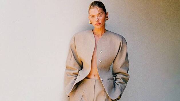 На размещенных кадрах 36-летняя манекенщица показала фото в бежевом брючном костюме с расстегнутыми пиджаком. При этом звезда отказалась от бюстгальтера, дополнив образ обувью с леопардовым принтом. В качестве аксессуаров она выбрала массивные золотые серьги.