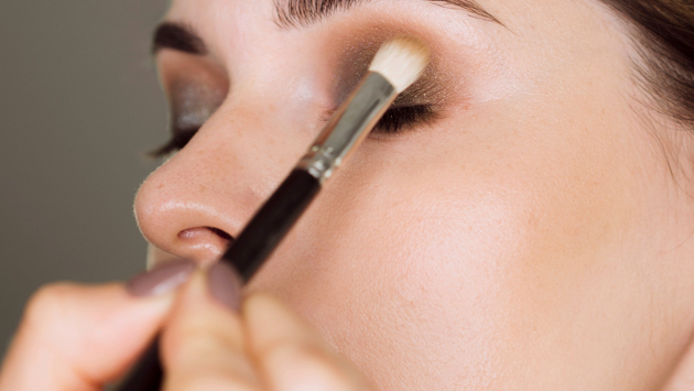 Главное – заранее задать направление стрелки с помощью скотча, плотно приклеив его к внешнему уголку глаза. Светло-коричневые тени наносятся в орбитальную складку, затем внешний угол затемняется более темным оттенком. Все переходы тщательно растушевываются. Для глубины можно добавить еще один, самый темный оттенок во внешний угол.