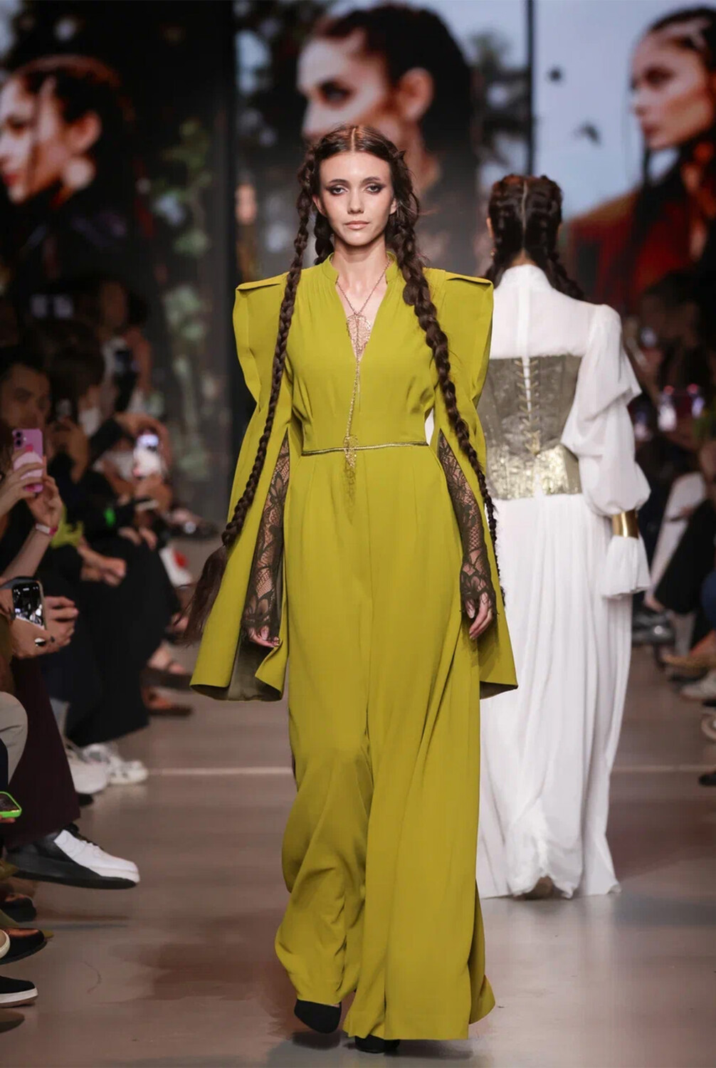 Также бренд Hatsibana из Нальчика продемонстрировал новую коллекцию, вдохновленную картиной Руслана Шамеева «Амазонка». В числе представителей моды из Нальчика также участвовали Akkulova Albina и SaiJamin.