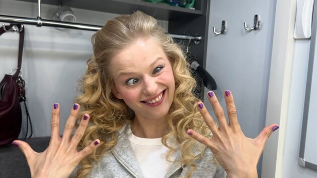 Поверх упомянутых предметов гардероба артистка надела коричневую шубу из искусственного меха. Она собрала волосы в небрежную прическу.