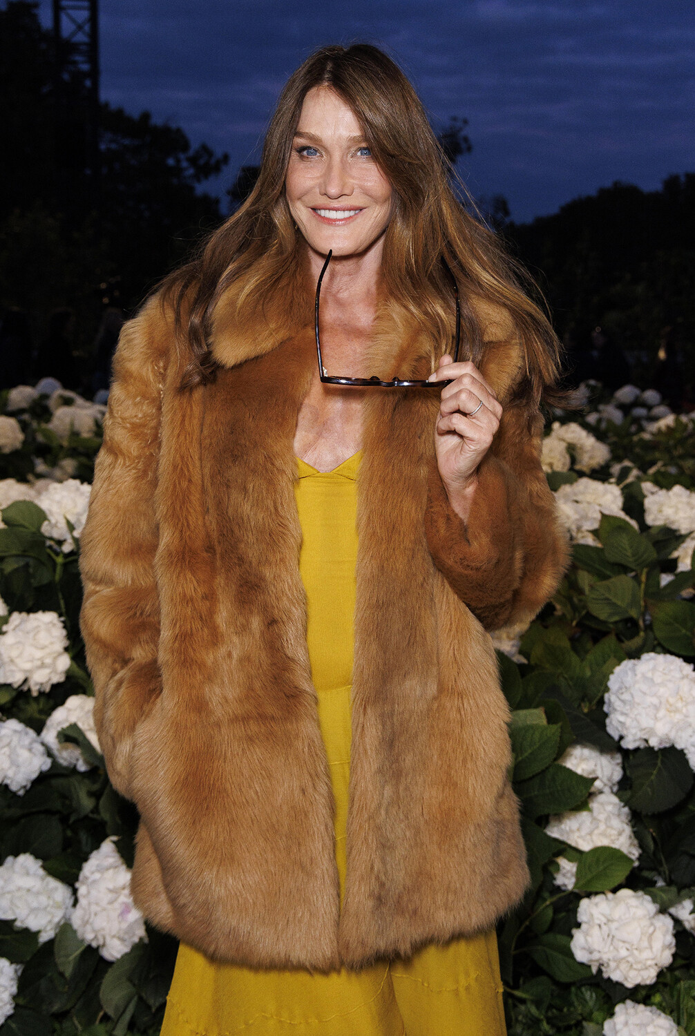 57-летняя Карла Бруни стала гостьей показа бренда Saint Laurent, который прошел 29 сентября в Париже. Супермодель позировала перед фотографами в горчичном платье с глубоким декольте, шубе и ботильонах на каблуках. На некоторых снимках манекенщица также надела солнцезащитные очки. Знаменитости уложили волосы и сделали макияж с блестящими тенями и помадой.