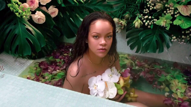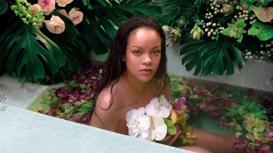 Рианна приняла участие в съемках рекламы геля для душа собственного бренда Fenty. В ролике поп-исполнительница сидела в ванне, украшенной цветами. Бизнесвумен прикрывала тело орхидеями. Певица позировала в серьгах и золотом ожерелье. Знаменитость была запечатлена с мокрыми распущенными волосами и без косметики.