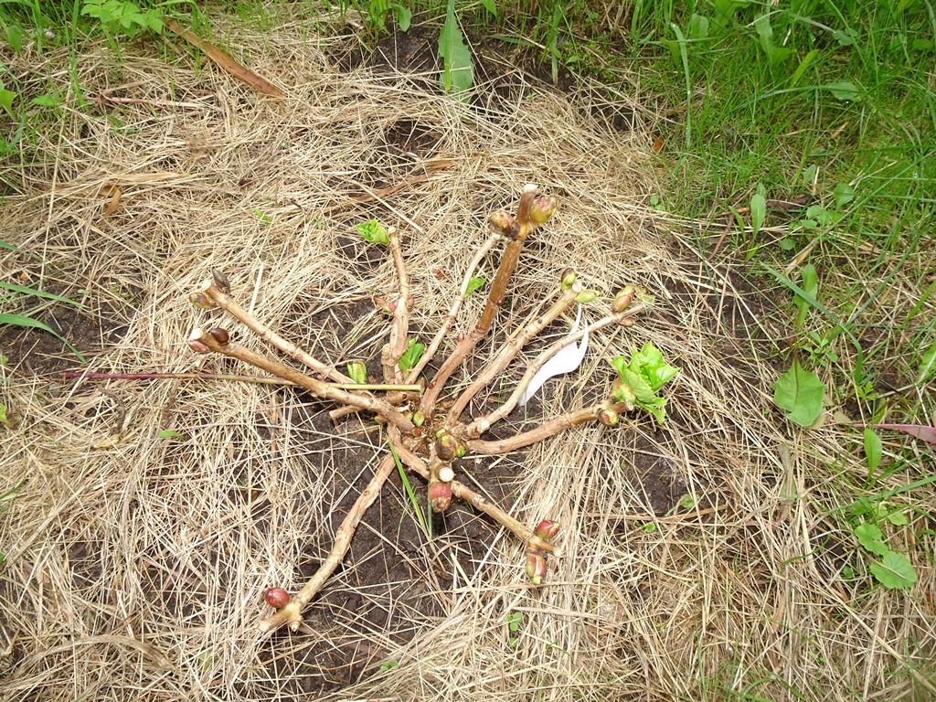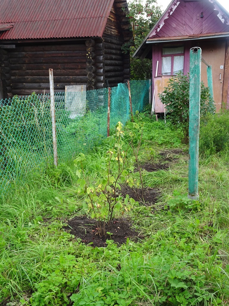 Мы с мамой и ее сестрой выкорчевали часть старых кустов смородины, а на их место посадила кустики, привезенные троюродным братом.