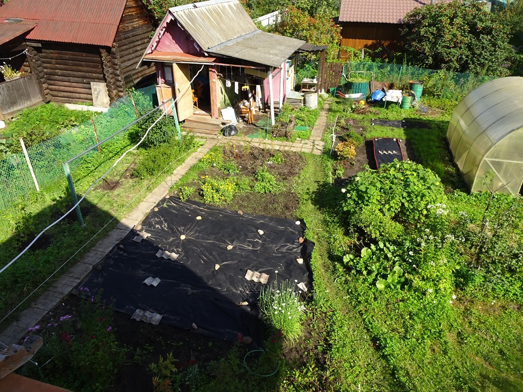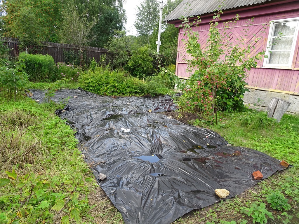 Несмотря на плохую погоду — дожди и грозы, — а также вопреки собственному организму, мне удалось слегка (а может и нет) привести участок в чувство. Я перекопала и накрыла спанбондом или черной пленкой большую часть грядок, где в дальнейшем у меня будут цветники или просто зона отдыха.