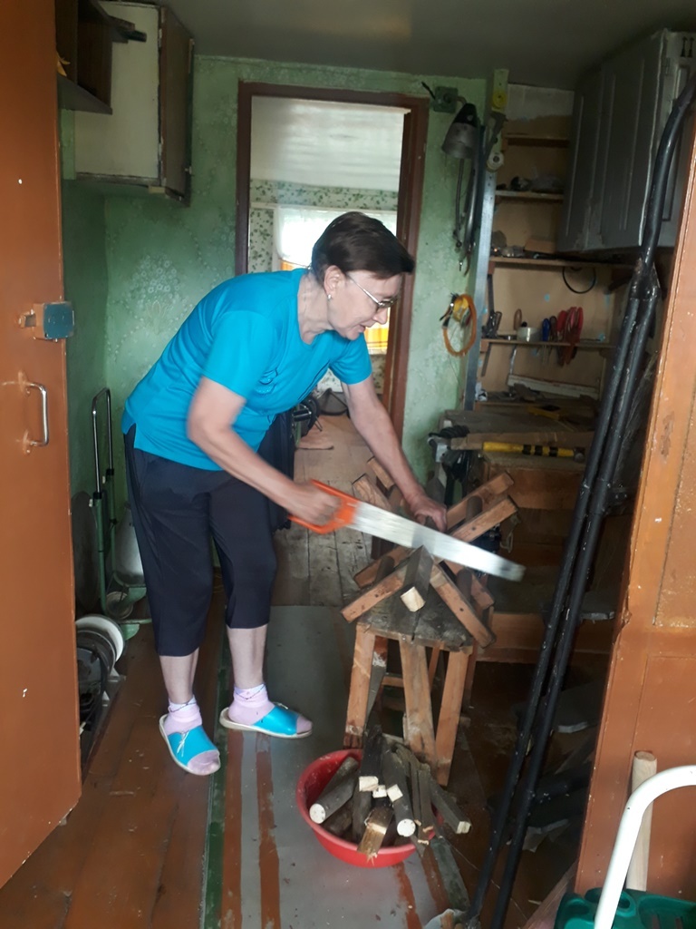 Так что у мамы появилась теперь новая обязанность: пилить дрова.)