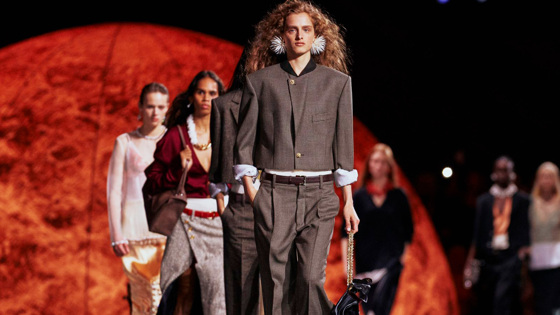 Огромные сферы отражались в чёрном, как нефть, полу с прожилками цвета, создавая ощущение нереальности — отголосок лучших шоу Лагерфельда. Ровно в 20:14 началась «модная высадка на Луну». Блази, который стал всего четвёртым дизайнером у руля Chanel, лишь слегка намекал на своё направление, публикуя чёрно-белые фото от Дэвида Бейли — будто бы курс на минимализм. Но всё оказалось сложнее. Первый выход — укороченный пиджак и клетчатые брюки, отсылка к тому, как Коко Шанель заимствовала вещи у своего возлюбленного Артура Кэйпеля. Идея андрогинности пронизывала весь показ: мужские рубашки превращались в вечерние топы, строгие силуэты сочетались со струящимися юбками.