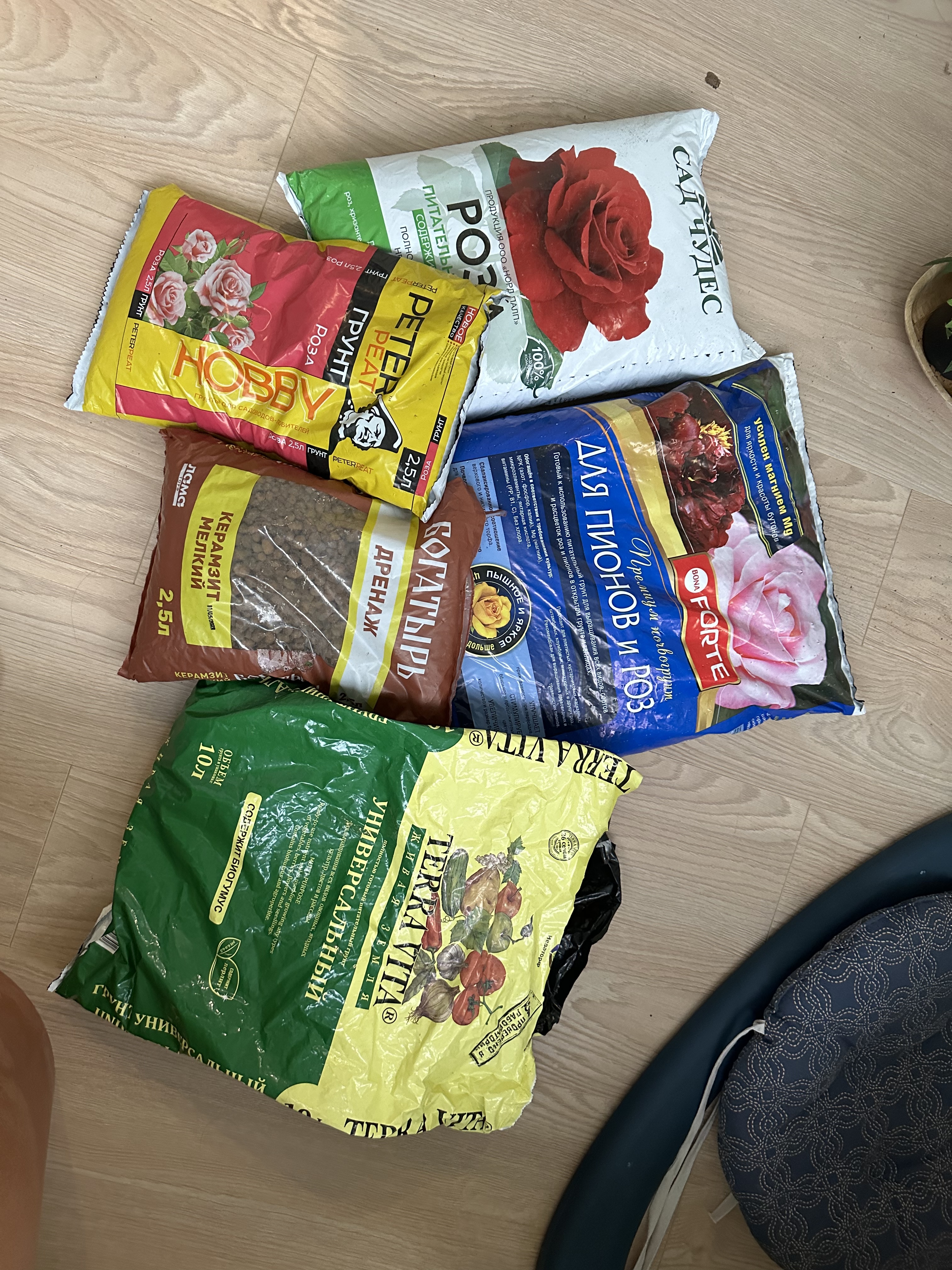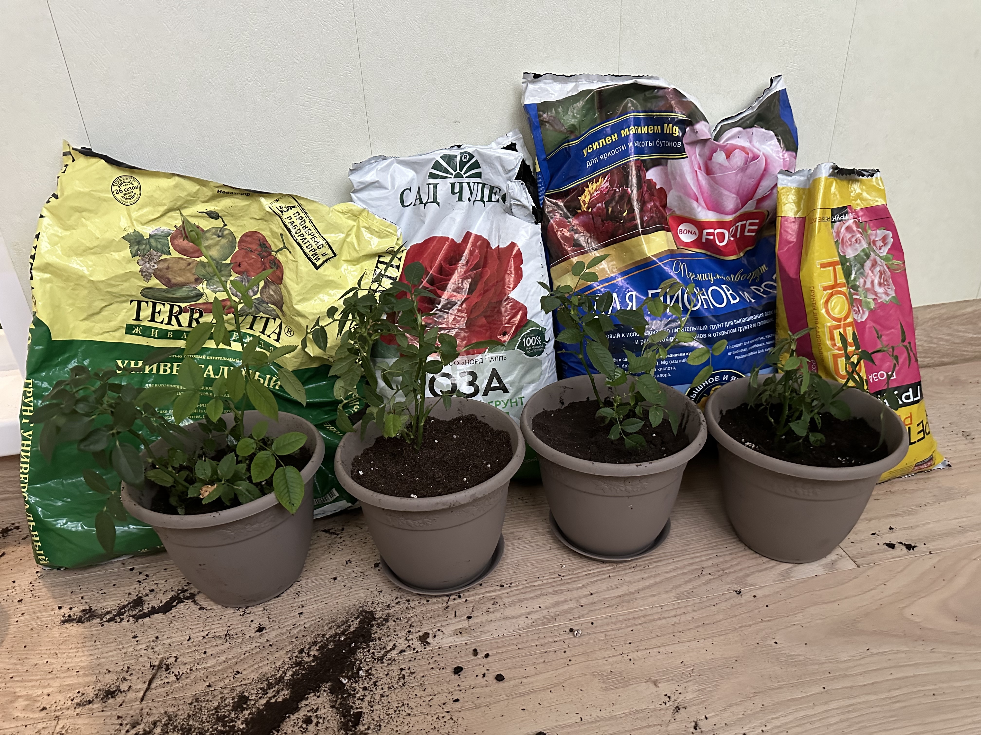 Тут же возник вопрос с грунтом — куда сажать, столько похожих марок с почвой для роз? Не смогла определиться, выбрала три разных производителя. Понаблюдаю за каждым.
