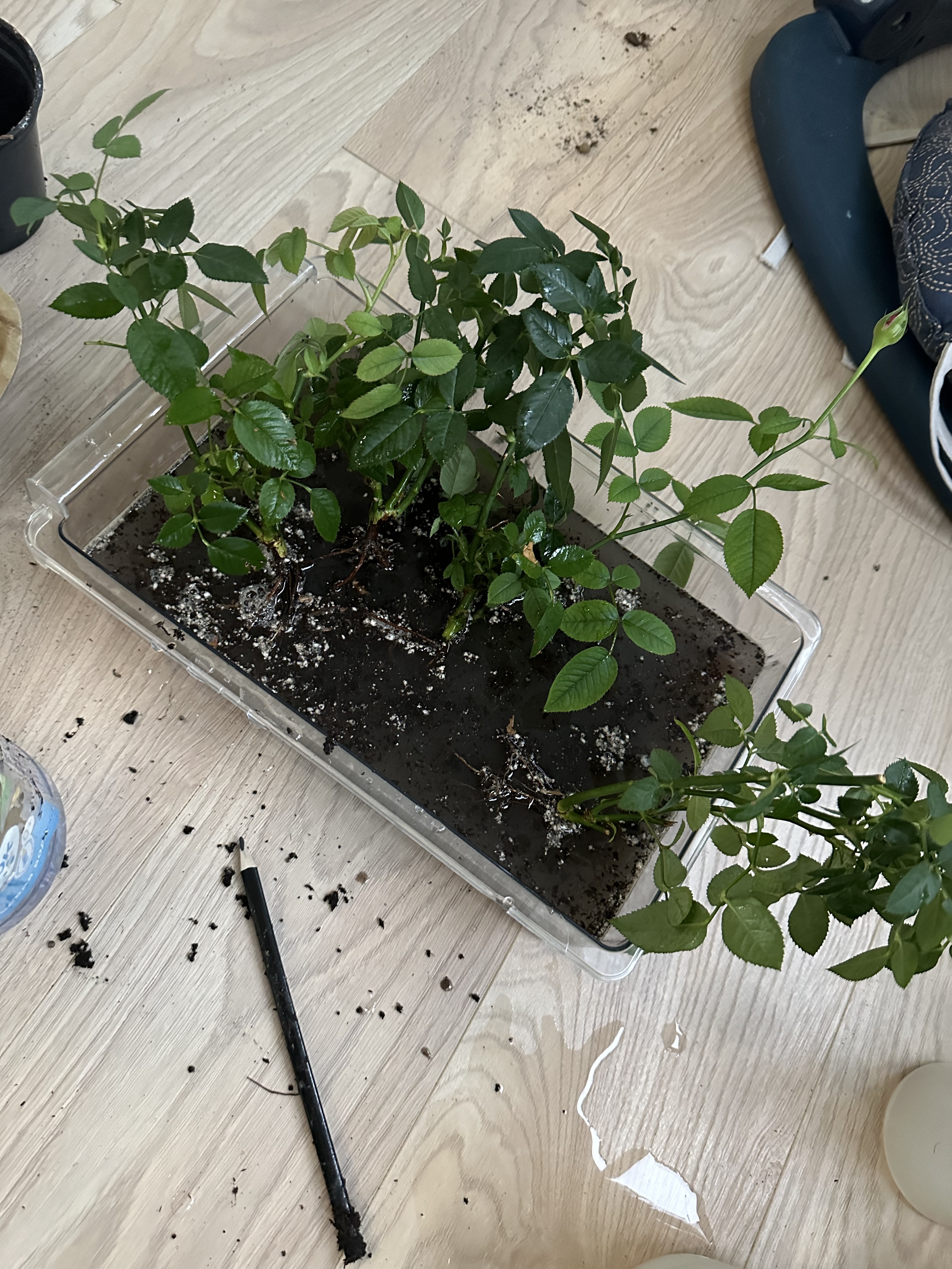 Уход в карантинное время был достаточно примитивный. Пока мы с мелким завтракали, она настаивалась в блюдце с водой. Допив кофе и скормив сыну кашу (это занимало где-то около 30 минут), блюдце с водой я выливала и оставляла цветок до следующего утра. Если почва оставалась влажная, то розу не трогала, а если сухая — повторяла вышесказанную процедуру. Опытным путем нащупали свою норму полива — раз в три дня.
