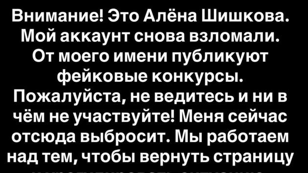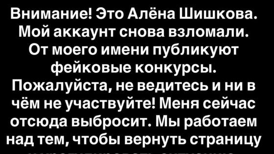 О взломе Шишкова узнала от своих подписчиков. На странице модели злоумышленники разместили серию фото, в том числе снимок с ключами от машины — якобы «призом» для случайного победителя. От имени Алёны они также опубликовали длинный «мотивирующий» текст, чтобы вызвать доверие у пользователей.
