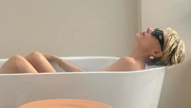 58-летняя Рената Литвинова предстала перед камерой без одежды, она надела только черные солнцезащитные очки Balenciaga и массивные серьги. Актриса сидела с уложенными волосами и макияжем с красной помадой в ванной.