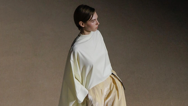 Другую сторону женственности представила Разан Алаззуни. Её коллекция будто парила в воздухе: пастель, мерцающие узоры из бисера, мягкие линии. Когда на финале шоу изображения перенеслись на небоскрёб, стало ясно, что архитектура и мода здесь играют в унисон — обе ищут лёгкость в пространстве.