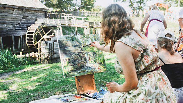 Вдохновение, приятное общение и природа – свои слагаемые счастья художник-импрессионист, преподаватель живописи Альбина Невядомская называет не задумываясь. Девушка умеет находить необычное в привычном, вдохновляться ливнем, удивлять картинами и неожиданными образами на творческих мероприятиях. Например, Альбина любит вошедшие в моду костюмированные усадебные пленэры, на которых можно ощутить себя гостьей, скажем, в усадьбе Афанасия Фета. Всегда что-то рисовала Выезжать на пленэры Альбина начала ещё в Старом Осколе. В местном педагогическом колледже она получила профессию педагога изобразительного искусства. – Одно из самых красивых мест там – меловые горы в Новооскольском районе. Длинные, белоснежные… Дикая, нетронутая природа будто из фантастического фильма. Вид на большую Меловую гору открывается прямо со двора, – вспоминает Альбина о том времени, когда при любом удобном случае наведывалась к бабушке в деревню с мольбертом. Считает, что детство, проведённое в деревне у бабушки на фоне красивых пейзажей, и повлияло на то, что она стала художницей. – На красоту окружающего мира вообще полезно смотреть всем, – замечает художница. – Это наполняет и вдохновением, и счастьем. Профессия художника, скорее, сама выбрала её, причём ещё в подростковом возрасте, когда девочке подарили книгу о Ван Гоге. Его картина «Звёздная ночь» очаровала будущую художницу смелыми, сочными мазками. Хотя ночь самой ей видится не синей, а фиолетовой. Сочетание фиолетового и жёлтого – любимая цветовая гамма художницы, а наиболее выразительным направлением она считает импрессионизм. Среди её любимых художников-импрессионистов Константин Коровин. Невядомская специально ездила в Третьяковскую галерею и Эрмитаж полюбоваться его работами и вообще старается выезжать хотя бы раз в год на крупные выставки в Москву и Санкт-Петербург, не пропускает и выставки, приезжающие в Курск. Конечно, художница сама постоянно участвует в коллективных выставках. Состоялись у Альбины и пять выставок персональных. – У меня одно большое увлечение – живопись, для меня это и профессия, и образ жизни, – говорит Альбина. – Сколько себя помню, я всегда что-то рисовала, больше природу, а так вообще всё, что вижу: посуду, животных, цветы и деревья. Больше всего люблю писать с натуры, такую натурную живопись нужно чувствовать. Пленэр при минус двадцати Особенно запомнился Альбине пленэр на улице Горького при 20-градусном морозе. – В другой раз на пленэре в усадьбе Нелидовых попала под сильный дождь, – продолжает художница. – Краски не ложились на мокрый холст, этюд я дописывала уже дома, но после этих двух суровых пленэров поняла, что пасмурная погода или дождь – в общем, некомфортные условия помогают импрессионисту лучше воплотить свои задумки на холсте. И всё же лучшее время для пленэров, считает Альбина, середина весны. – В это время устанавливается тёплая погода, вокруг всё начинает расцветать, свежий, немного прохладный ветерок, а когда светят яркие лучи солнца, то это просто идеальный пленэрный день, – рассуждает она. Перепробовав разные материалы, художница пришла к выводу, что ей ближе всего густые масляные краски. Один из любимых приёмов Альбины – импасто – сочные мазки, как на картинах Ван Гога. В Курске девушка училась на худграфе (направление «искусство костю
