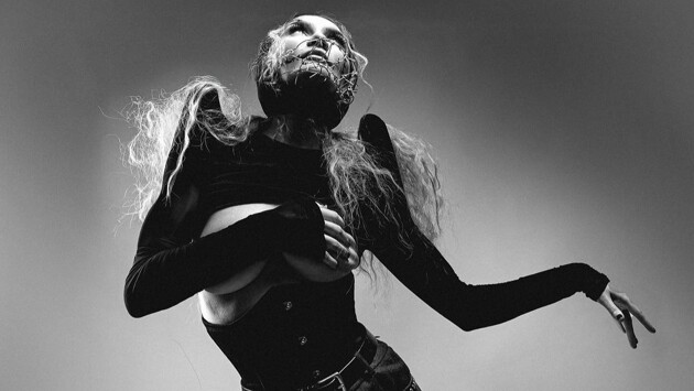Кроме того, на размещенных черно-белых кадрах можно заметить, что Делви позировала в двух кожаных ремнях и маске, изготовленной из металлической проволоки. Также стилисты дополнили ее образ небрежными локонами и черным маникюром.
