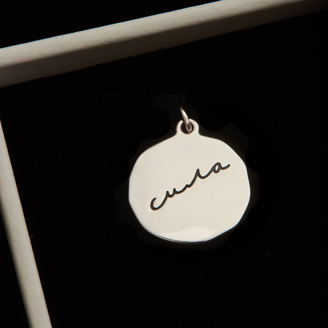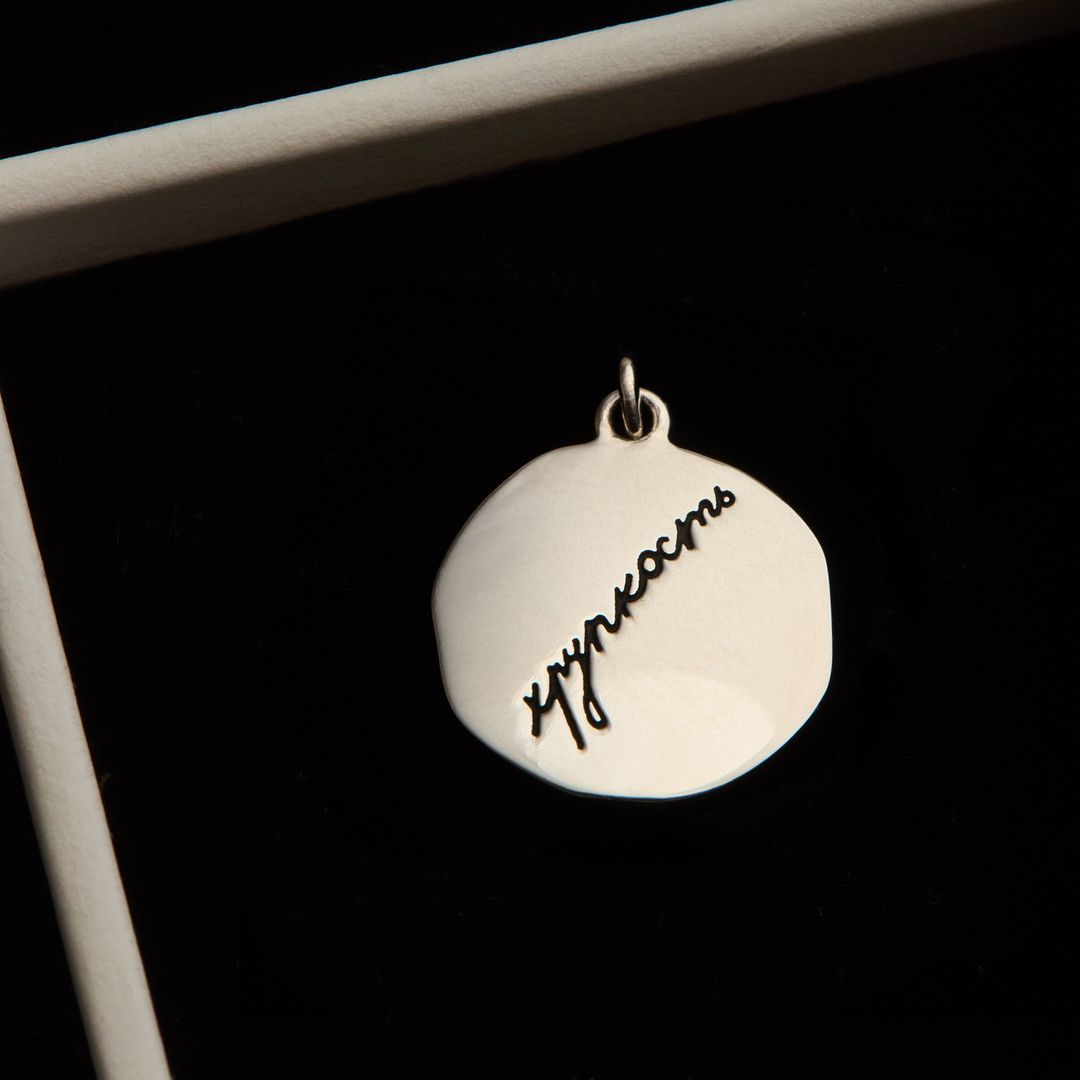 Визуальная идея коллекции основана на «почерке мамы». Команды брендов попросили своих мам написать выбранные слова от руки и на основе этих образцов создали единый графический стиль для дизайна кулонов.